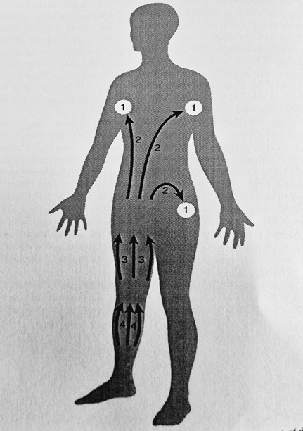 Phase 1 – 45mins of MLD followed by compression bandages, remedial exercises.