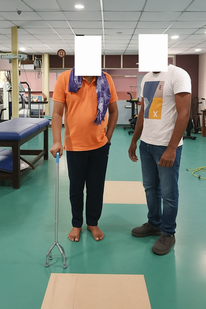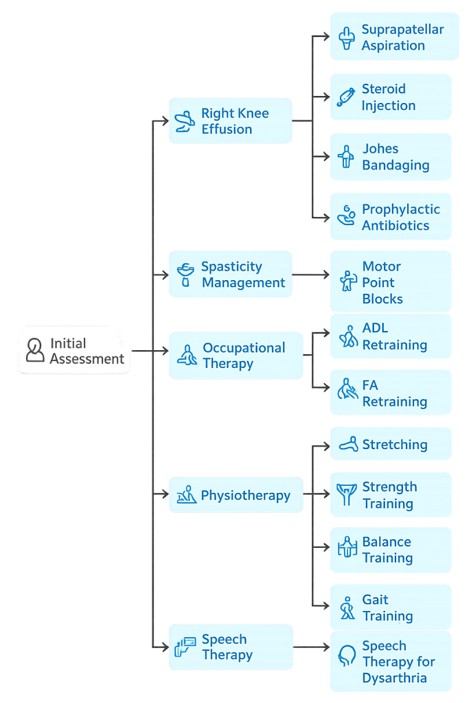 A 54-year-old male from Chhattisgarh, with known comorbidities of Hypertension, was apparently well until 23rd July 2024, when he developed sudden onset weakness of left upper limb and lower limb, speech disturbances, reduced consciousness. He was taken to nearby hospital and radio imaging was done – found to have right thalamic bleed. He was managed conservatively. He was started on bedside physiotherapy and was later referred to CMC Vellore for rehabilitation. Rehabilitation was initiated and he achieved independent sitting and required maximum assistance for standing. For further rehabilitation he was admitted in HCAH Bangalore.